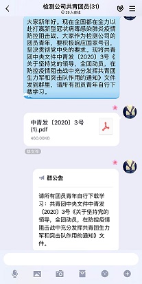 網絡宣傳凝聚青年防控力。檢測公司主動貫徹落實習近平總書記重要指示精神和黨中央、團中央號召,根據交建公司團委指示,第一時間通過QQ群上傳《關于做好新型冠狀病毒感染的肺炎疫情聯防聯控工作督查的通知》文件,要求公司團員青年下載學習,并通過微信朋友圈發出《四川交建疫情防控倡議書》,積極引導全體團員青年參與到疫情防控工作中來,主動利用微信、微博等平臺開展正面輿論引導,號召大家在關鍵時刻不信謠、不傳謠,切實守護文明、有序的網絡空間。