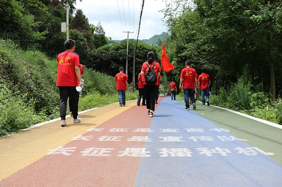 參觀結束后,黨員同志們深切緬懷革命先烈,向革命先烈敬獻鮮花,并在紅軍長征紀念館前舉起右拳,重溫入黨誓詞:“我志愿加入中國共產黨,擁護黨的綱領,遵守黨的章程……”,表達了自己作為一名共產黨員對黨忠誠、為黨的事業奉獻終身的決心與義務。最后,大家尋著紅軍的足跡,一邊參觀紀念碑長廊、蘇維埃舊址,一邊徒步“紅色高河長征小道”,重走長征之路,銘記長征歷史。