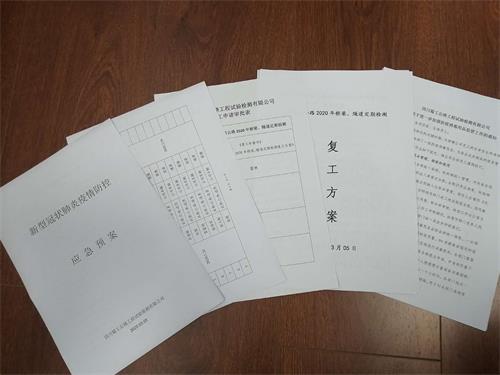 在開展橋隧檢測前,雷林同志按照“抓疫情防控不放松,抓安全生產不松懈”的原則,制定了《成仁高速公路2020年橋梁、隧道定期檢測復工方案》《新型冠狀肺炎疫情防控應急預案》,組織了參與定期檢測工作組成員反復學習公司《關于進一步加強防疫消毒用品監管工作的通知》,熟知防疫消毒用品管理、領取、使用,消毒酒精儲存和使用注意事項以及84消毒液的使用、配比和注意事項,并對定期檢測工作組成員全面開展健康評估的基礎上,向公司疫情防控工作組提出復工申請,得到同意后方予進場開展橋隧檢測工作,為整個檢測工作的安全開展奠定了基礎。