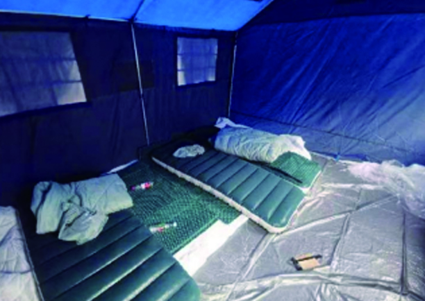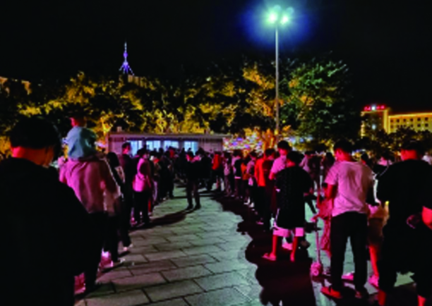 晚上9點多,安全排查隊隊員收工來到集體核酸檢測點。