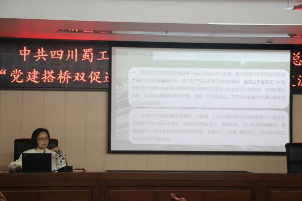 隨后,技術交流正式開始,黨員們齊聚一堂,對試驗檢測領域內的熱點問題和前沿技術進行了深入探討。機關支部黨員代表曾小花同志以《混凝土拌和物常見問題、原因分析及解決措施》為題,將理論與實踐緊密結合,深入淺出地闡