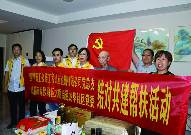 2022年7月1日,在慶祝中國共產黨成立101周年之際,蜀工檢測公司黨總支紀律檢查委員、公司董事、副總經理、工會主席劉紅帶領四川路橋黨員先鋒服務隊交建集團檢測公司支隊隊員前往駐地社區,同社區黨委成都市龍泉驛區大面街道龍華社區黨委開展結對共建幫扶活動,看望慰問社區老黨員老干部,向他們致以崇高的敬意和節日的問候。大面街道龍華社區黨委書記、居委會主任羅華群,黨委副書記韋生富、劉萍陪同。