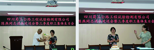 “莫道桑榆晚,為霞尚滿(mǎn)天”。為進(jìn)一步增強(qiáng)退休職工的獲得感和幸福感,提升團(tuán)隊(duì)的凝聚力和戰(zhàn)斗力,2022年7月26日,蜀工檢測(cè)公司舉辦退休職工歡送會(huì)暨三季度集體生日會(huì),活動(dòng)由公司黨總支紀(jì)律檢查委員、董事、副總經(jīng)理、工會(huì)主席劉紅同志主持,黨總支書(shū)記、董事長(zhǎng)倪建軍出席會(huì)議并講話(huà)。