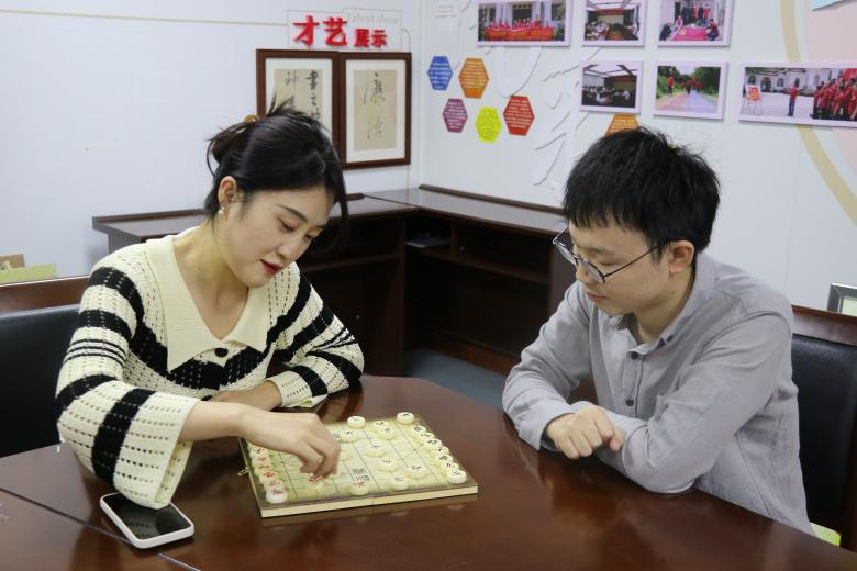活動開始,首先由顧先強為大家介紹我國的傳統文化之一——象棋的由來和發展。隨后,大家選擇自己擅長的、感興趣的中國象棋、五子棋或飛行棋等棋類,以娛樂為目的進行棋藝交流。團員青年們以棋會友,不斷挑戰自己,二人或四人組成一桌,互相指點,共同進步,現場笑聲不斷,氣氛熱烈而融洽。