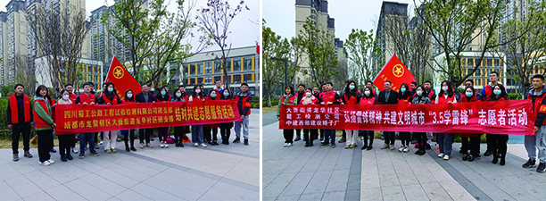 凝聚青春合力,擦亮城市底色。蜀工檢測公司團支部與公司所屬地大面街道龍華社區團支部結對共建開展“弘揚雷鋒精神 共建文明城市”學雷鋒志愿服務活動,組織青年志愿者對社區環境進行整治,清理錦麟公園廣場、錦麟府小區外圍的衛生死角,潔凈社區家園環境;向居民發放文明城市創建、反詐安全宣傳單,勸導群眾不文明行為,共建和諧美好家園。此次活動共有志愿者30余人,團員青年積極發揮示范帶頭作用,賡續雷鋒精神,共清理衛生死角100余處,發放宣傳資料300份,為建設文明城市、構建和諧社會貢獻了自己的力量。