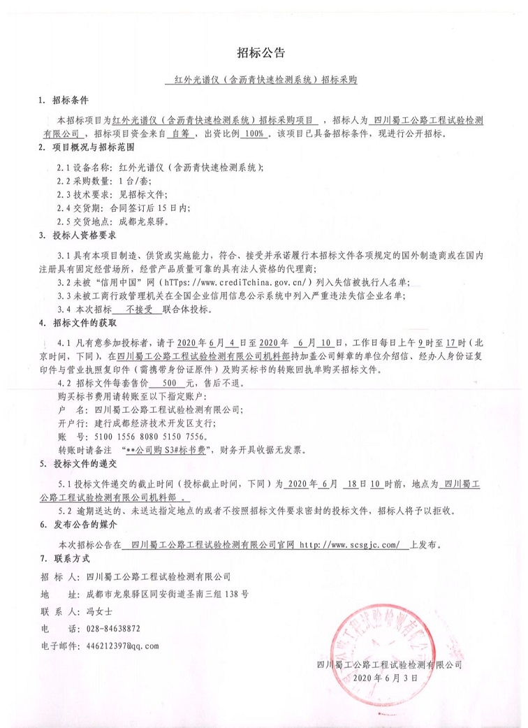 紅外光譜儀(含瀝青快速檢測系統)招標采購公告