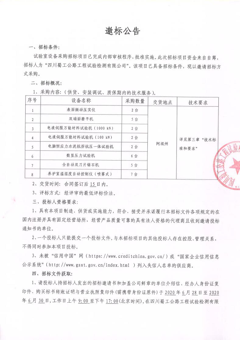 試驗室設(shè)備采購邀請招標(biāo)公告