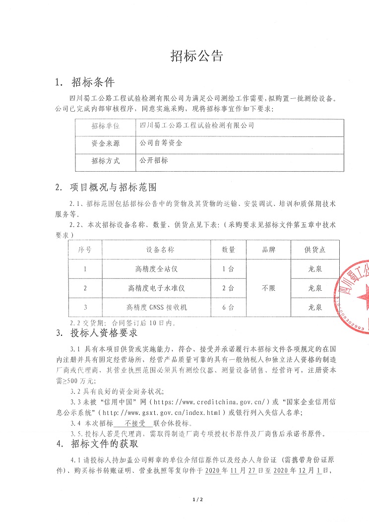 測繪設備采購公開招標公告