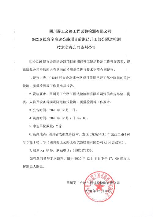 G4216線宜金高速公路項目前期已開工部分隧道檢測技術交流合同談判公告