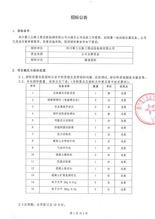 試驗儀器設(shè)備采購邀請招標(biāo)公告