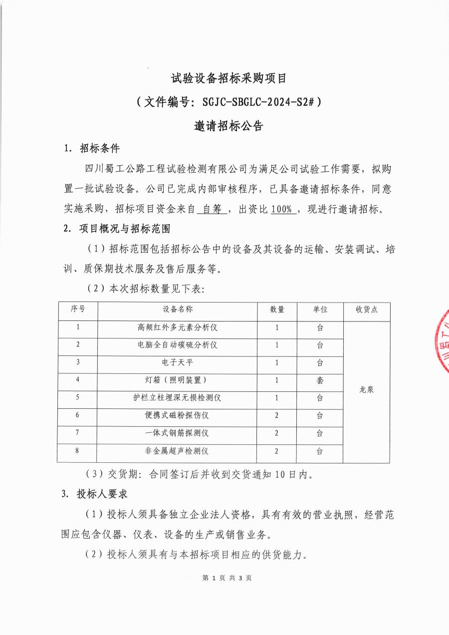 四川蜀工公路工程試驗(yàn)檢測(cè)有限公司2024-2026...
