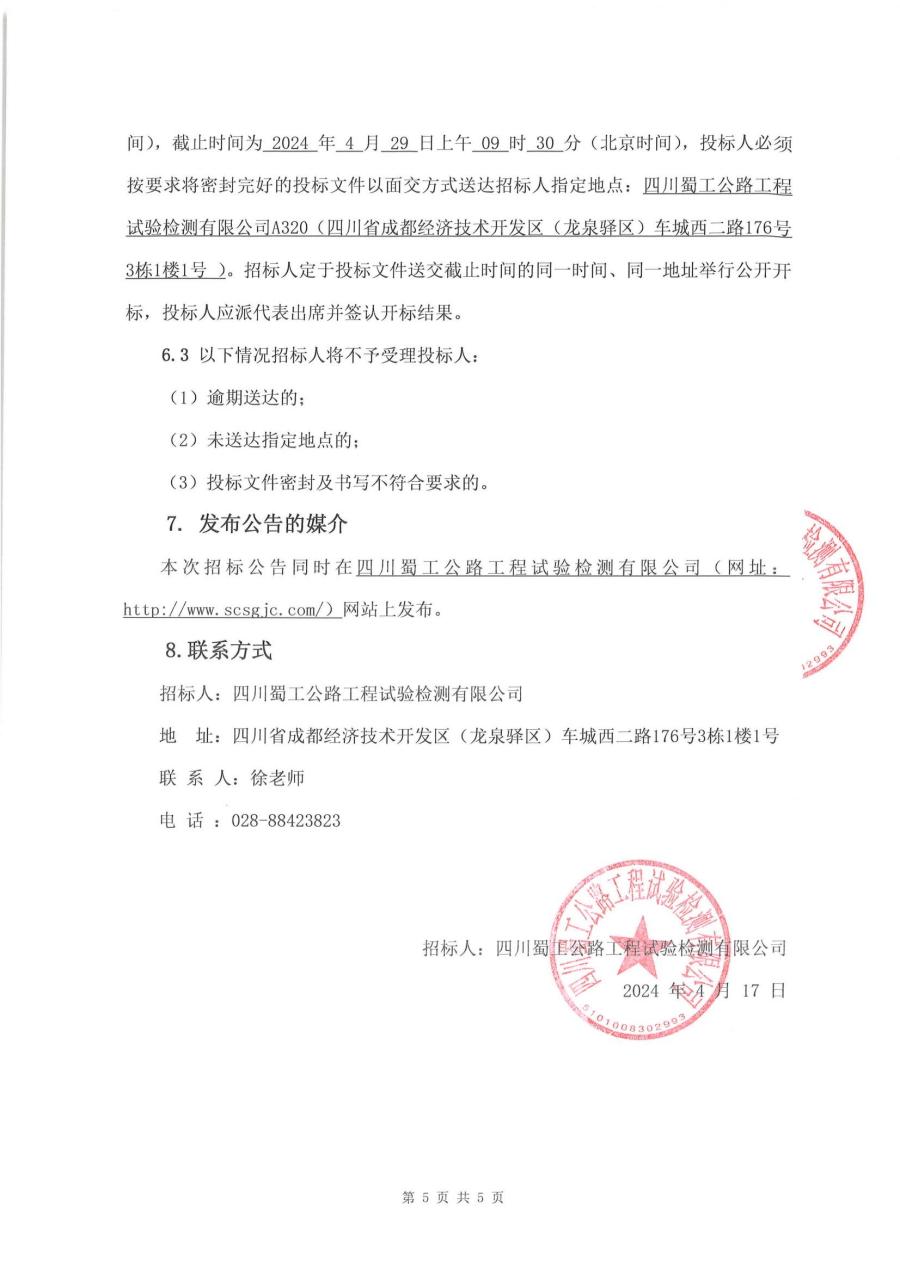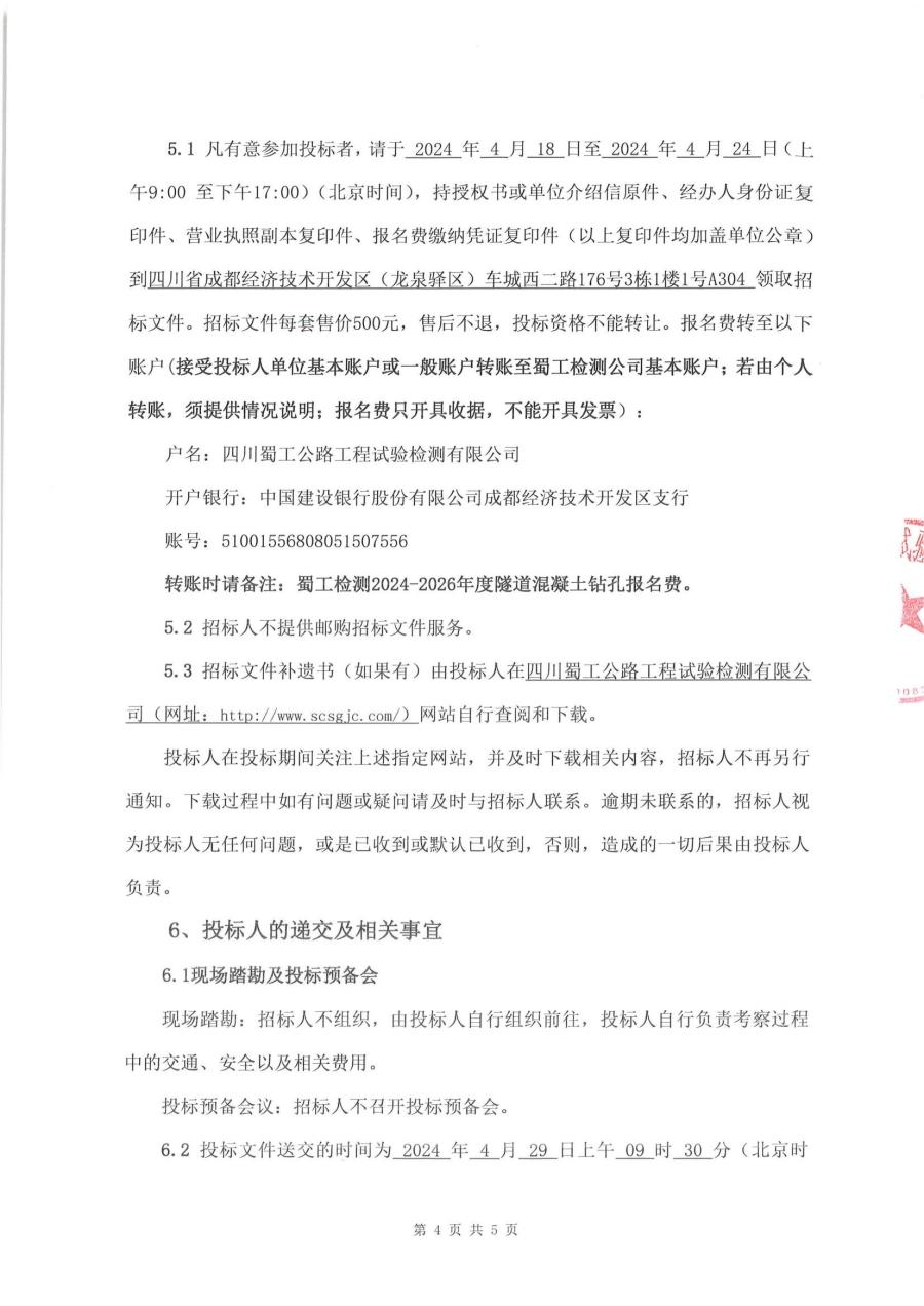 四川蜀工公路工程試驗檢測有限公司2024-2026年隧道混凝土鉆孔勞務協作招標公告