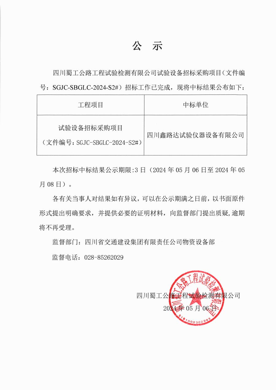 四川蜀工公路工程試驗(yàn)檢測(cè)有限公司2024-2026...
