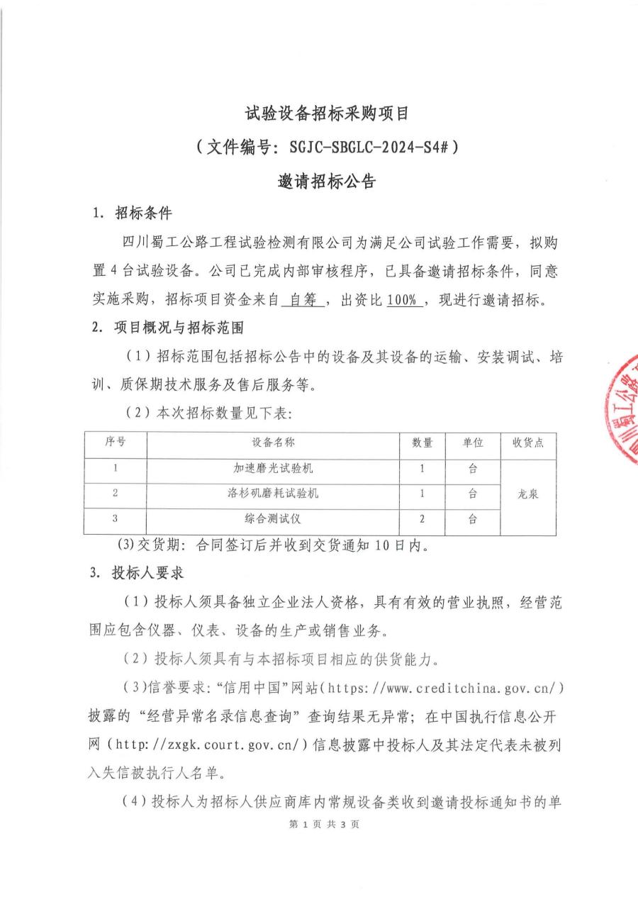 試驗設(shè)備招標(biāo)采購項目(文件編號:SGJC-SBGLC-...