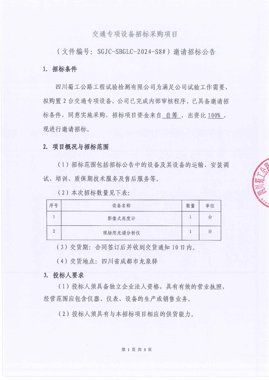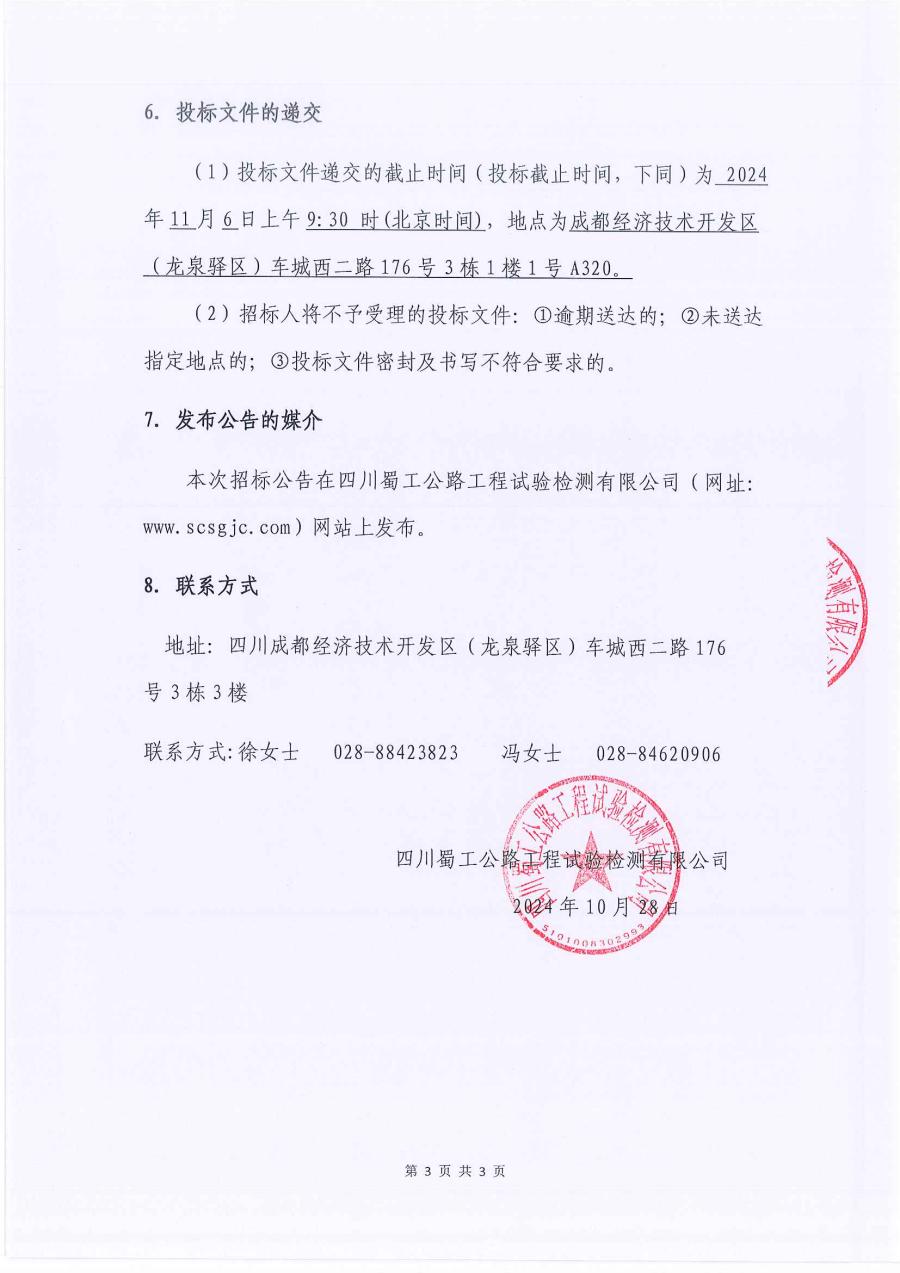 四川蜀工公路工程試驗(yàn)檢測(cè)有限公司選取2024年...