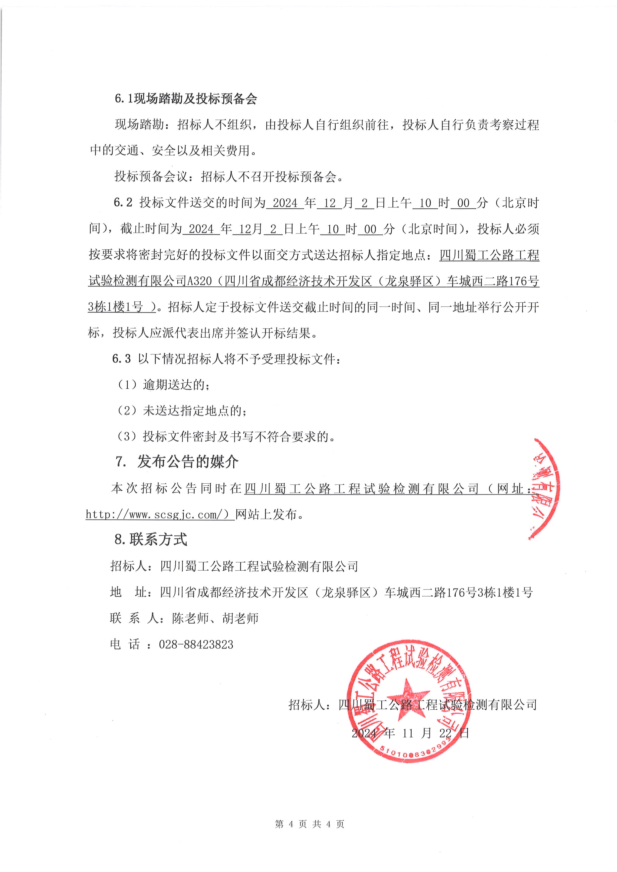 四川蜀工公路工程試驗檢測有限公司選取2024年...