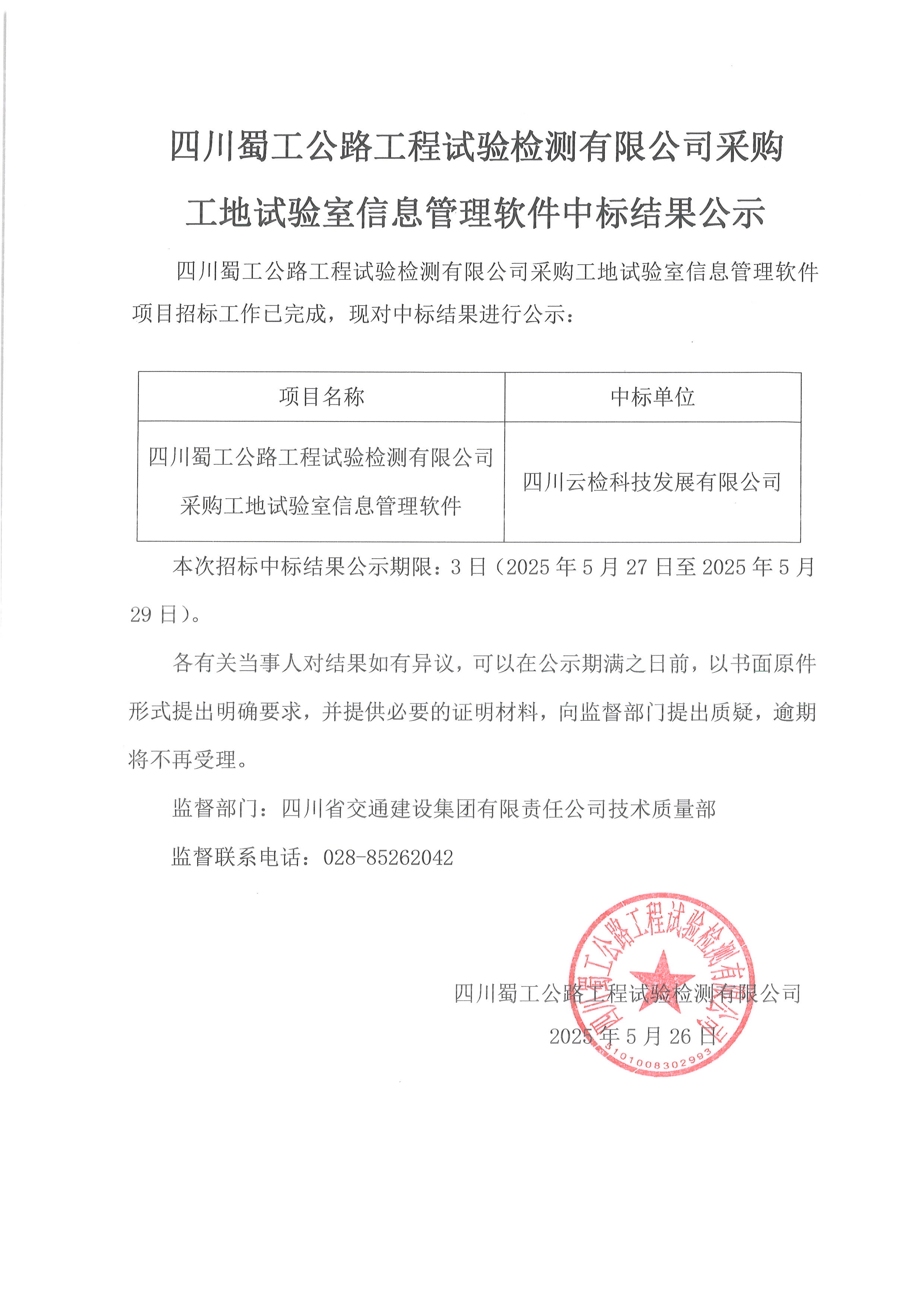 四川蜀工公路工程試驗(yàn)檢測有限公司采購工地試...