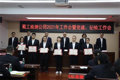 會議對2020年度先進集體、先進個人和優秀試驗室主任進行了表彰,全面總結了檢測公司2020年及“十三五”工作,提出了“十四五”工作目標,安排部署了2021年重點工作,與成綿TJ6項目工地試驗室、沿江XJ9-11項目工地試驗室簽訂了2021年度《經營目標責任書》。
