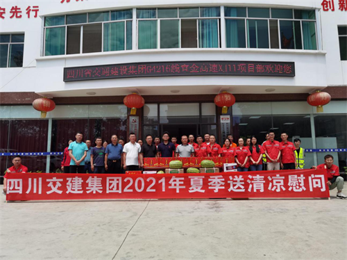2021年7月29日,四川省交通建設(shè)集團(tuán)股份有限公司副總經(jīng)理周永軍帶隊(duì)到檢測(cè)公司沿江高速公路項(xiàng)目(新金段)S4工地試驗(yàn)室開(kāi)展2021年夏送清涼慰問(wèn)活動(dòng),為員工們送上藿香正氣水、葡萄糖、板藍(lán)根等防暑降溫慰問(wèn)物資。
