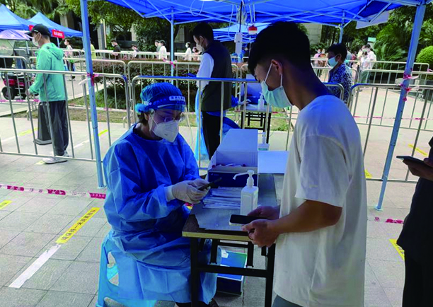 公司黨總支紀律檢查委員、董事、副總經理、工會主席劉紅帶頭下沉防疫一線,參加天府新區華陽街道將軍碑社區志愿服務——現場秩序維護、核酸檢測現場信息錄入