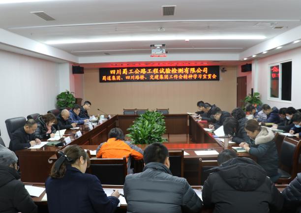 1月16日,蜀工檢測公司組織召開蜀道集團、四川路橋、交建集團工作會精神學習宣貫會。蜀工檢測公司領導班子成員、中層管理人員及部分職工代表共計43人參會,會議由蜀工檢測公司黨總支副書記、副董事長、副總經理(主持生產經營管理工作)周琦森主持。