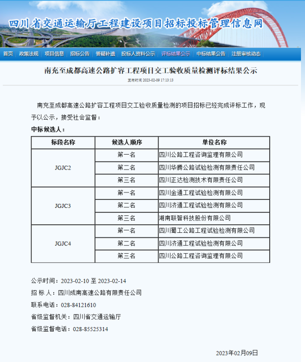 近期,蜀工檢測公司成功中標南充至成都高速公路擴容工程交工驗收質量檢測JGJC4標段,標志著蜀工檢測公司在高速公路交竣工驗收業務板塊取得了突破性進展。