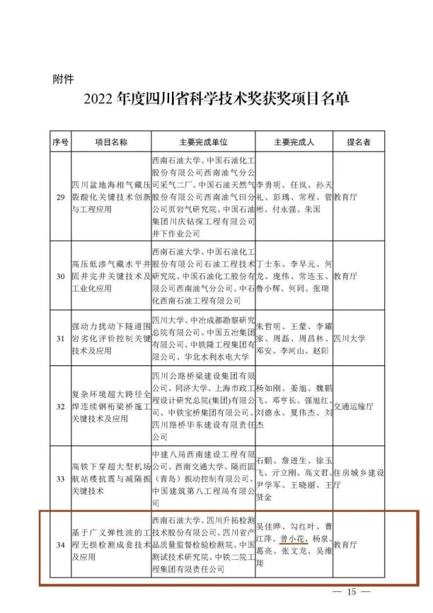 3月28日上午,四川省科學技術獎勵大會暨第三屆“四川杰出人才獎”頒獎儀式在成都市舉行。蜀工檢測公司技術負責人、體系運維中心總監曾小花參研的“基于廣義彈性波的工程無損檢測成套技術及應用”榮獲“四川省科學技術進步獎二等獎”。