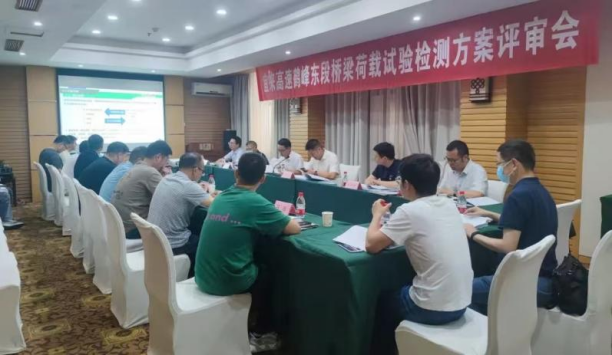 面對技術大考,蜀工檢測公司精心組織一支在橋梁荷載試驗方面經驗豐富的技術團隊,聚力攻堅。前期,通過對橋梁施工圖進行充分研究,到項目現場實地勘察,主動對接橋梁設計、監控、施工及業主等各方單位,確保信息數據全面準確,多次組織分析研討會,邀請行業專家進行技術指導,最終形成了具有可操作性的荷載試驗方案,并順利通過專家評審。