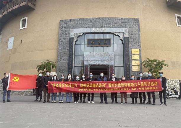 為進一步加強黨員干部黨風(fēng)廉政教育,引導(dǎo)黨員干部注重家風(fēng)培養(yǎng),涵養(yǎng)清廉情懷,營造家風(fēng)好、黨風(fēng)正、作風(fēng)清的良好氛圍,12月8日,蜀工檢測公司機關(guān)、道路、橋隧黨支部組織黨員干部前往洛帶古鎮(zhèn)“四川客家家風(fēng)館”開展廉潔實地教育暨12月聯(lián)合主題黨日活動,活動共17人參加。