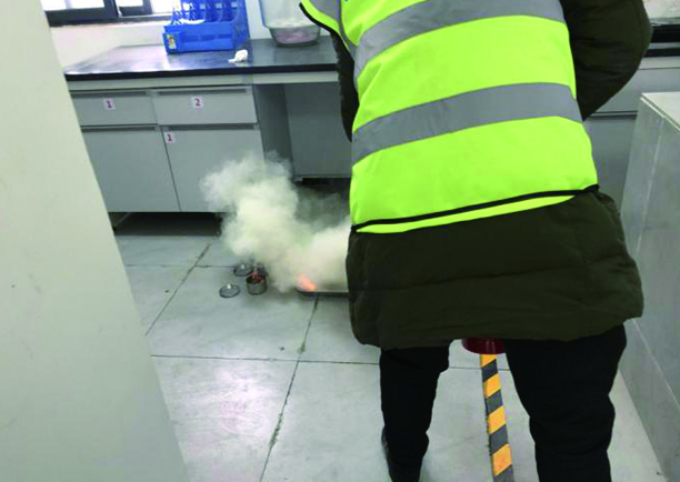 試驗(yàn)檢測人員周朋做化學(xué)試驗(yàn)時,由于操作失誤,導(dǎo)致化學(xué)藥品燃燒,當(dāng)試驗(yàn)檢測人員杜江發(fā)現(xiàn)該緊急情況時,在第一時間進(jìn)行了滅火處理,并向試驗(yàn)室負(fù)責(zé)人報告火災(zāi)情況,試驗(yàn)室負(fù)責(zé)人立即啟動應(yīng)急預(yù)案,各應(yīng)急小組迅速進(jìn)入應(yīng)急狀態(tài),實(shí)施應(yīng)急處理。